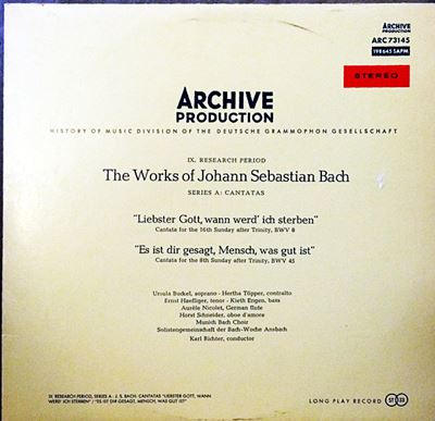 リヒター(Karl Richter)|バッハ:教会カンタータ 第45番 「人よ、汝はさきに告げられたり、善きことの何なるかん」 BWV45