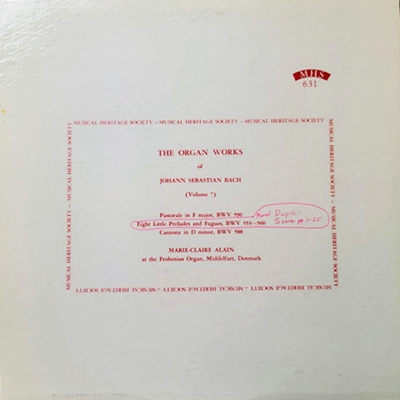 (Organ)マリー=クレール・アラン:1962年12月10日~12日録音(Marie-Claire Alain:Recorded December 10-12, 1962)